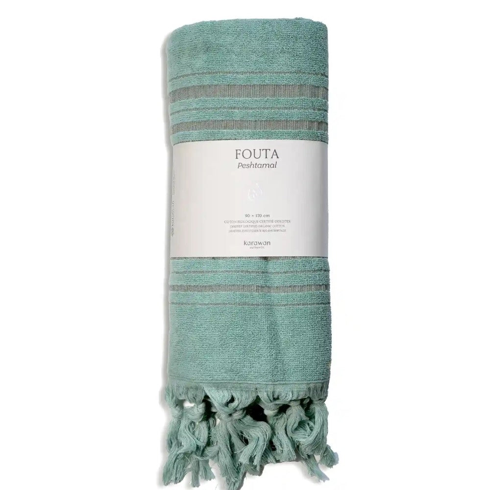 Die in der Türkei Peştemal – altpersisch „Tuch für den Rücken“ – genannten Foutas entstammen der Jahrtausende alten Badetradition. Der traditionellen Webart mit Schussfaden und Kettfaden wurde eine dritte Garnart hinzugefügt, um Schlaufen auf dem Stoff zu bilden und ihn damit saugfähiger zu machen.