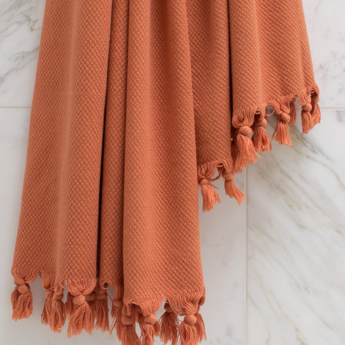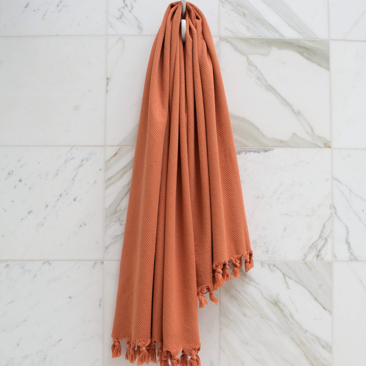 Dieses Pestemal wird in der Türkei in einer Dorfweberei im traditionellen Holzwebrahmen in Handarbeit gewebt, die Kettfäden werden ebenfalls per Hand verknotet. Das fein eingewebte Rautenmuster macht das reine Baumwolltuch schön griffig und saugfähig. Es fühlt sich seidig weich an und ist perfekt geeignet als: